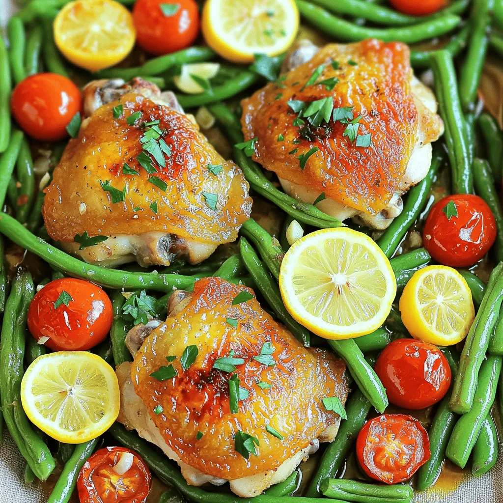 1. Arrange the vegetables. Place lemon slices, cherry tomatoes, and green beans around the chicken in the skillet. This not only adds flavor but also makes the dish look colorful.