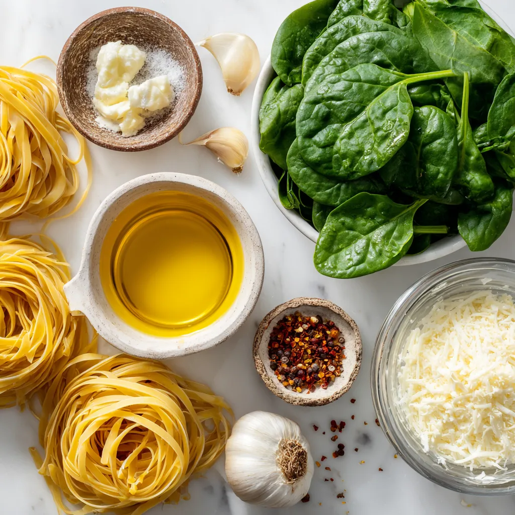 Main Ingredients for One-Pot Alfredo Spinach Pasta
