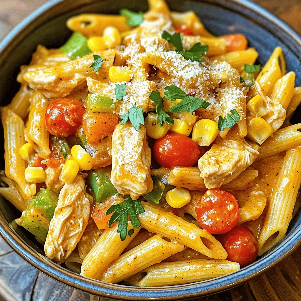 ![- 2 boneless, skinless chicken breasts, cut into bite-sized pieces - 2 tablespoons Cajun seasoning - 1 bell pepper (red or green), sliced - 1 medium onion, diced - 3 cloves garlic, minced - 8 ounces of penne pasta - 4 cups chicken broth - 1 cup heavy cream - 1 cup cherry tomatoes, halved - 1 cup corn kernels (frozen or fresh) - Salt and pepper to taste Chicken is the star of this dish. I use boneless, skinless chicken breasts for easy cooking and great flavor. Cajun seasoning adds a spicy kick that makes each bite exciting. You can choose red or green bell peppers for sweetness and color. Diced onions and minced garlic build a strong base of flavor. Penne pasta holds the sauce well and cooks perfectly in one pot. The liquids are just as important. Chicken broth adds depth and richness. Heavy cream brings creaminess and helps blend all the flavors. Cherry tomatoes and corn are my go-to veggies for freshness and texture. Don’t forget to season with salt and pepper to taste! - 1 tablespoon olive oil - Kosher salt and black pepper - Fresh parsley, chopped (for garnish) - Grated Parmesan cheese (optional, for serving) Olive oil is key for cooking the chicken and vegetables. I use kosher salt and black pepper to control the seasoning easily. Fresh parsley adds a pop of color and a fresh taste when you serve the pasta. Grated Parmesan cheese is an optional touch, but it adds a rich flavor that pairs nicely with the Cajun spices. For the full recipe, check [Full Recipe]. Start by seasoning the chicken pieces with Cajun seasoning. Use about two tablespoons for great flavor. Make sure to coat each piece well. This step adds a kick to your dish. Heat a large pot or Dutch oven over medium-high heat. Pour in one tablespoon of olive oil. Once hot, add the seasoned chicken. Sauté until browned, which takes about 5 to 7 minutes. Then, remove the chicken from the pot and set it aside. In the same pot, add one diced onion and one sliced bell pepper. Sauté for about 3 to 4 minutes until both are softened. Next, add three minced garlic cloves and cook for another minute. This will make your kitchen smell amazing! Now, add 8 ounces of penne pasta to the pot. Pour in 4 cups of chicken broth and stir well to combine. Bring this mixture to a boil. Once boiling, reduce the heat to a simmer. Add in 1 cup of halved cherry tomatoes and 1 cup of corn. Don’t forget the browned chicken! Cover and cook for about 12 to 15 minutes. Stir occasionally until the pasta is al dente. Remove the pot from heat and stir in 1 cup of heavy cream. This gives the dish a rich and creamy texture. Mix until everything is well incorporated. Season with salt and pepper to taste. Let the pasta sit for about 5 minutes to thicken. Finally, fluff the pasta with a fork before serving. For a lovely touch, serve the dish in shallow bowls. Garnish with fresh parsley and a sprinkle of grated Parmesan cheese if you like. Enjoy this hearty and easy dish that brings big flavors to your table! For the complete recipe, check out the Full Recipe. To boost the taste of your One-Pot Cajun Chicken Pasta, start with homemade Cajun seasoning. This mix gives you control over the spice level. Blend paprika, oregano, thyme, and cayenne pepper for a fresh kick. You can also add more vegetables. Try diced zucchini or sliced mushrooms for extra texture and nutrients. They cook well and soak up the Cajun flavor, making your dish even better. Ensure your pasta cooks evenly by stirring it well when you add it to the pot. This helps prevent clumping. Keep an eye on the heat. If it boils too fast, the pasta may cook unevenly. To adjust sauce consistency, you can add more chicken broth if it looks too thick. If it's too thin, let it simmer a bit longer. This way, your pasta will be creamy and flavorful. Pair your pasta with fresh bread or a light salad for a complete meal. Garlic bread is a great choice, as it complements the dish's spice. For storage, let the pasta cool before placing it in an airtight container. It lasts up to three days in the fridge. When reheating, add a splash of chicken broth to keep it creamy and delicious. Enjoy a flavorful meal every time! {{image_2}} You can change the main protein in this dish. If you want a lighter option, use shrimp. Shrimp cooks fast and adds a nice touch. Sausage is another great swap. It brings a hearty flavor and pairs well with spices. For gluten-free options, try using gluten-free pasta. Many brands offer pasta made from rice or chickpeas. These options work well in this recipe. They will give you the same tasty dish without gluten. If you love spice, add jalapeños or red pepper flakes. They boost the heat and make the dish exciting. You can also add hot sauce for more zing. For creaminess variations, mix in cream cheese or sour cream. These ingredients create a rich texture. You can also use a lighter milk, like almond milk, for a healthier twist. Each option brings its own unique flair to the dish. Explore these variations to make One-Pot Cajun Chicken Pasta suit your taste. For the complete recipe, check out the [Full Recipe]. After you make the One-Pot Cajun Chicken Pasta, let it cool down. Store it in an airtight container in the fridge. It will stay fresh for about 3 to 4 days. If you want to keep it from drying out, place a piece of plastic wrap directly on the pasta before sealing the lid. For longer storage, you can freeze the pasta. First, let it cool completely. Then, portion it into freezer-safe bags or containers. Squeeze out the air to prevent freezer burn. This dish can last up to 3 months in the freezer. When you're ready to eat, just thaw it in the fridge overnight. To reheat, you can use the microwave or stove. If using the microwave, place the pasta in a bowl and add a splash of broth or cream. This keeps it moist. Heat it in short bursts, stirring often. If using the stove, warm it on low heat, stirring frequently. This helps the flavors stay strong and the texture right. Enjoy your tasty