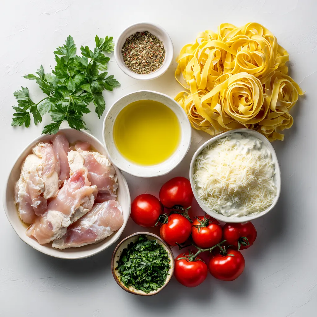 In this recipe, we use a few key items that make Parmesan chicken pasta a winner. The chicken breasts bring protein and flavor. Fettuccine pasta serves as a wonderful base. Heavy cream creates a rich, creamy sauce. Parmesan cheese adds that distinct, cheesy taste.