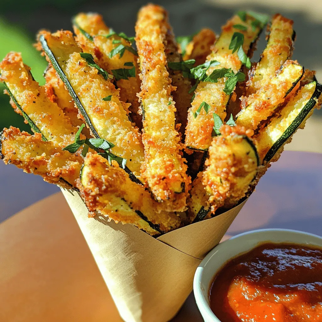 Parmesan Zucchini Fries pair well with many dishes. You can serve them alongside marinara sauce for dipping. They also go great with ranch or garlic aioli. For a full meal, try serving them with grilled chicken or fish. A fresh salad can balance the meal nicely. These fries make a fun snack or appetizer at parties, too!