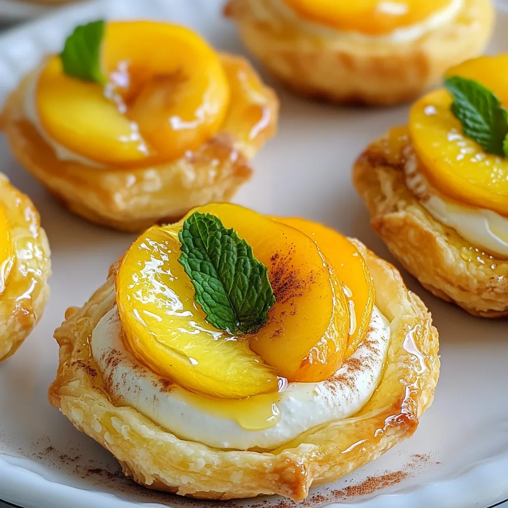 Make your tarts look pretty. Arrange the sliced peaches in a fan shape. This adds charm to each tart. Use fresh mint leaves to garnish. They add a pop of color and freshness. Serve on a colorful plate for a fun touch. Dust some powdered sugar over the tarts before serving for extra sweetness.