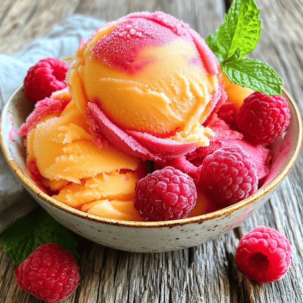 Fresh fruits are the stars of this sorbet. Ripe peaches give it a sweet, juicy base. They should feel soft when you gently press them. Fresh raspberries add a tangy burst of flavor. Their bright color makes the sorbet look beautiful.