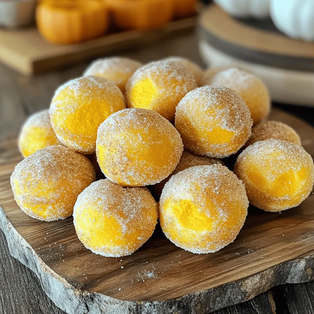 Pumpkin spice donut holes are bite-sized treats made with pumpkin puree and warm spices. They have a soft, cake-like texture and are rolled in cinnamon sugar. These mini donuts capture the flavors of fall in every bite.