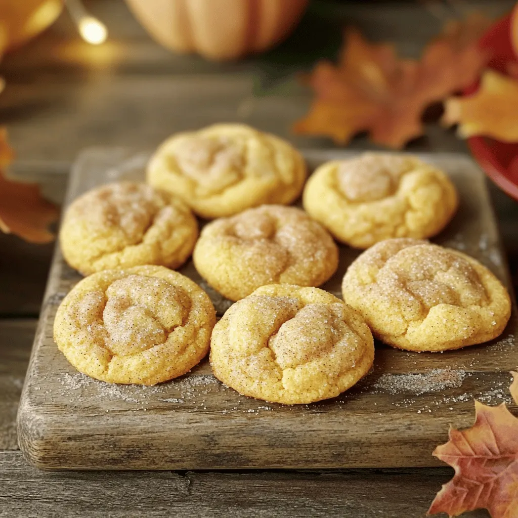 ![The main ingredients in Pumpkin Spice Snickerdoodles work together to create a cozy treat. Here’s a breakdown of these key ingredients: - Pumpkin puree: This is the star of the show. It adds moisture and a rich flavor. The puree also gives the cookies their lovely orange hue. - Granulated sugar: This sweetens the cookies and helps them spread during baking. - Brown sugar: It adds depth to the flavor. Its moisture keeps the cookies soft and chewy. - Unsalted butter: Softened butter is crucial for a fluffy texture. It helps to cream well with the sugars. - Eggs: They bind the dough and give it structure. - Vanilla extract: This adds a warm, sweet flavor that complements the pumpkin. - All-purpose flour: This is the base of the dough. It gives the cookies their body. - Cream of tartar: It adds a slight tang and helps the cookies rise. - Baking soda: This helps the cookies spread and become fluffy. - Salt: A pinch of salt enhances all the flavors. - Pumpkin pie spice: This blend of spices, including cinnamon and nutmeg, brings that classic fall flavor. Using fresh pumpkin puree and quality pumpkin pie spice is vital for the best taste. Canned pumpkin can be used but ensure it’s 100% pumpkin, not pumpkin pie filling. If you want to jazz up your Pumpkin Spice Snickerdoodles, consider these optional ingredients: - Nuts: Chopped walnuts or pecans add a nice crunch and flavor. - Chocolate chips: These can add sweetness and richness. Dark or white chocolate works well. You can also play with sweeteners. Try coconut sugar for a caramel-like taste. Honey or maple syrup can add a unique flavor but may change the dough's texture. Adjust by adding more flour if needed. For the full recipe, check out the [Full Recipe]. To start, measure your pumpkin puree. Use a dry measuring cup. Fill it with puree, then level it off with a knife. This gives you a precise amount. Next, let’s soften the butter. Take it out of the fridge and cut it into small pieces. Leave it on the counter for about 15 minutes. This helps it blend well with the sugars. Now, let’s cream the softened butter with both sugars. Use a large bowl and a hand mixer or a whisk. Mix until it looks fluffy and light. Next, add in the pumpkin puree, eggs, and vanilla extract. Mix until they combine well. In another bowl, whisk the flour, cream of tartar, baking soda, salt, and pumpkin pie spice. This step helps to evenly distribute the dry ingredients. Gradually mix the dry ingredients into the wet mixture. Stir until just combined. Be careful not to over-mix. This keeps cookies soft and chewy. Preheat your oven to 350°F (175°C). Line two baking sheets with parchment paper. Scoop about 2 tablespoons of dough and roll it into a ball. Roll each ball in the sugar and pumpkin pie spice mixture. Place the dough balls on the baking sheets, 2 inches apart. Bake for 10-12 minutes. Look for lightly golden edges. Once done, let the cookies cool on the sheets for 5 minutes. Then transfer them to wire racks to cool completely. For the full recipe, check out the recipe section above. To get the right texture for your pumpkin spice snickerdoodles, focus on two key things: fluffiness and chewiness. If you want soft and fluffy cookies, add a bit more pumpkin puree. This ingredient keeps them moist. If you prefer chewy cookies, use less flour and bake them for a shorter time. Cooling time is also crucial. After baking, let the cookies sit on the baking sheets for five minutes. This helps them firm up. Then, transfer them to wire racks. Letting them cool completely helps develop the best texture. To boost the pumpkin spice flavor, consider adding more pumpkin pie spice. You can also try a dash of cinnamon or nutmeg for extra warmth. Mixing in some finely chopped pecans can add a nice crunch too. Pair these cookies with warm apple cider or vanilla latte. The cozy flavors will blend well. For a fun twist, enjoy them with a scoop of vanilla ice cream. The cool creaminess balances the warm spices beautifully. For the full recipe, check out the detailed instructions above. {{image_2}} You can easily switch things up in your Pumpkin Spice Snickerdoodles. Try adding nutmeg or ginger for a unique taste. A hint of cinnamon can also enhance the warmth. If you’re feeling adventurous, make these cookies into sandwich cookies! Just add a creamy filling, like cream cheese frosting, between two cookies. This twist gives you extra flavor and fun. If you need gluten-free options, use almond flour or a gluten-free blend. These flours work well and keep the cookies soft. For a vegan version, swap eggs for flax eggs. Simply mix one tablespoon of ground flaxseed with three tablespoons of water. Use coconut oil instead of butter for a tasty alternative. These changes keep your cookies delicious and friendly for all diets. To keep your pumpkin spice snickerdoodles fresh, store them in an airtight container. This helps prevent them from drying out. You can place parchment paper between layers to keep them soft. These cookies stay fresh for about one week at room temperature. If you want to keep them longer, consider chilling them in the fridge. This can extend their freshness up to two weeks. You can freeze the dough or the baked cookies. If you choose to freeze the dough, scoop out cookie balls and place them on a baking sheet. Freeze them until solid, then transfer them to a freezer bag. This method helps you bake fresh cookies anytime you want. For baked cookies, let them cool completely before wrapping them in plastic wrap. Store them in a freezer-safe bag. They will stay fresh for about three months. To thaw, place the frozen cookies on your counter for about an hour. If you want them warm, reheat in the oven at 350°F for a few minutes. Enjoy the coziness of your pumpkin spice snickerdoodles anytime! For the full recipe, check the main section. To make your cookies taste more like pumpkin, use more pumpkin puree. You can add an extra ½ cup for a richer flavor. You can al