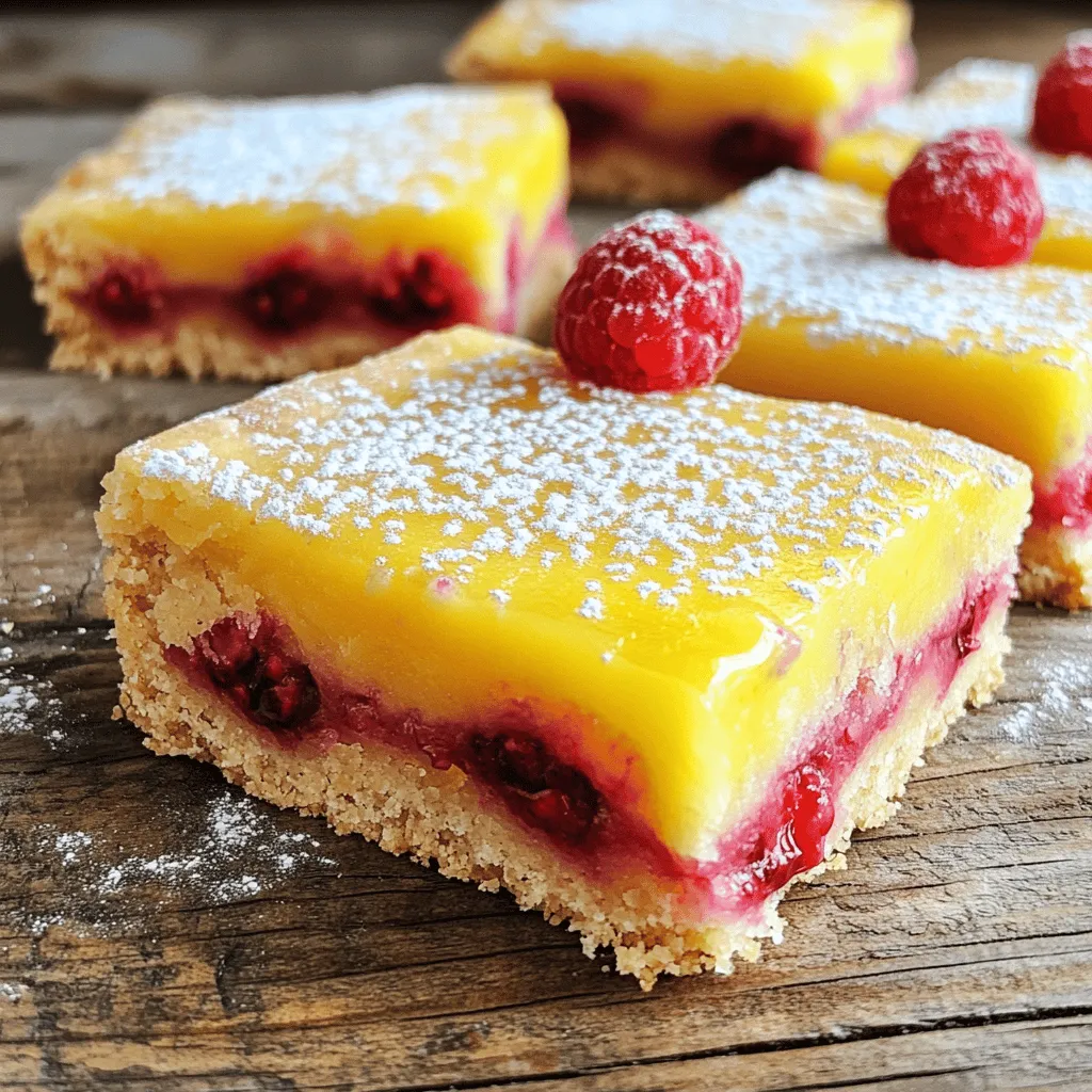 When serving, cut the bars into neat squares. Dust them with powdered sugar for a sweet touch. Use a sharp knife for clean edges. Arrange them on a colorful plate. This makes for a pretty display. You can also add fresh raspberries on top. This adds a nice pop of color. Enjoy with a glass of lemonade for a refreshing treat!