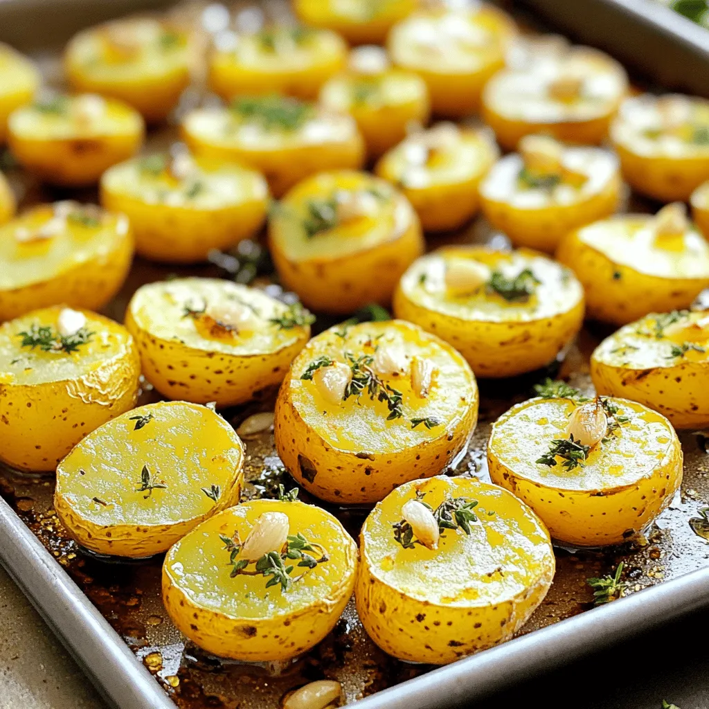First, you need to preheat your oven to 425°F (220°C). This step is key for getting that nice, crispy finish on the potatoes. While the oven warms up, grab 2 pounds of baby potatoes. Cut each potato in half. Next, take 6 cloves of garlic and crush them gently. The garlic will add a rich flavor to the dish.