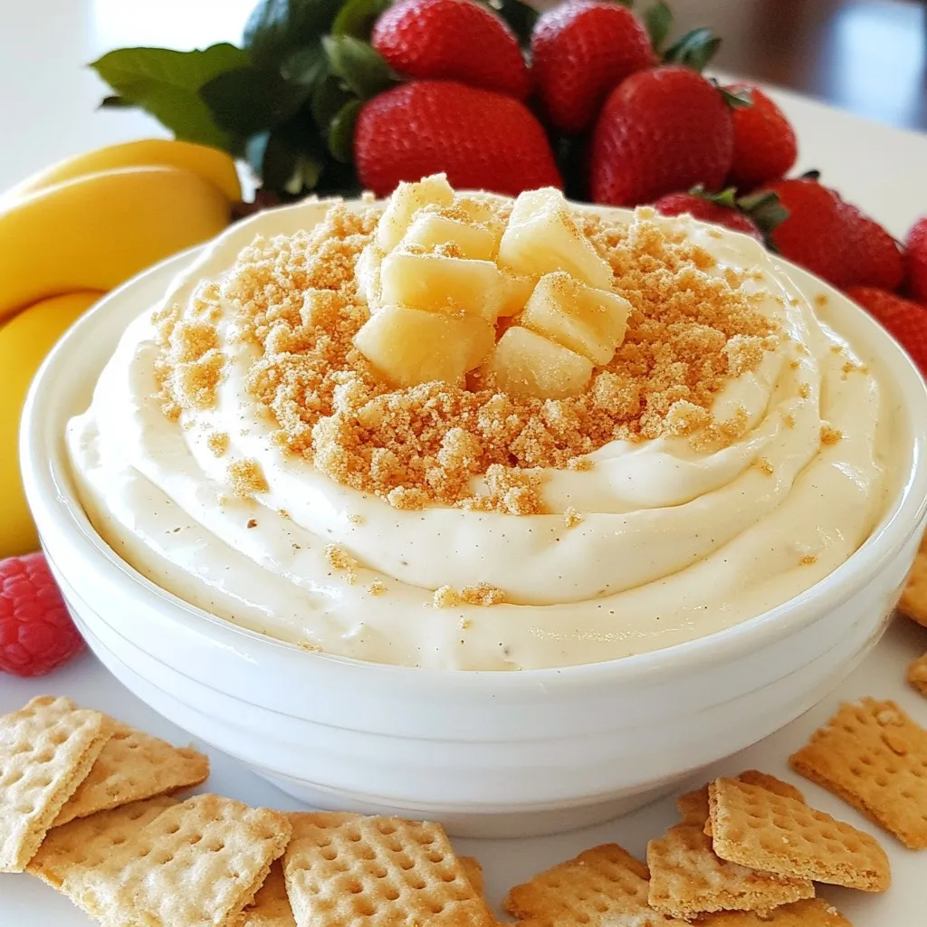 These ingredients create a rich, creamy dip with a hint of cinnamon and vanilla. The cream cheese gives it a smooth texture, while the crushed graham crackers add a nice crunch. You can also toss in mini chocolate chips for a sweet surprise!