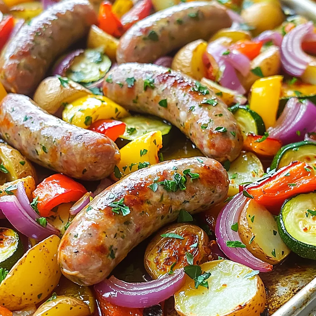 When you’re ready to eat the leftovers, reheating is simple. Preheat your oven to 350°F (175°C). Spread the leftovers on a baking sheet. Heat them for about 15-20 minutes. This method helps keep the sausages juicy and the veggies crisp. You can also use the microwave, but the oven gives better results.