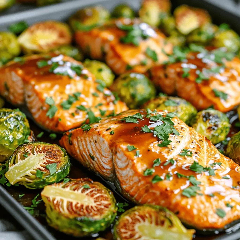 Store leftovers in an airtight container. This keeps the salmon and Brussels sprouts fresh. They can last in the fridge for up to three days. When storing, try to keep the salmon on top. This prevents the sprouts from getting mushy.