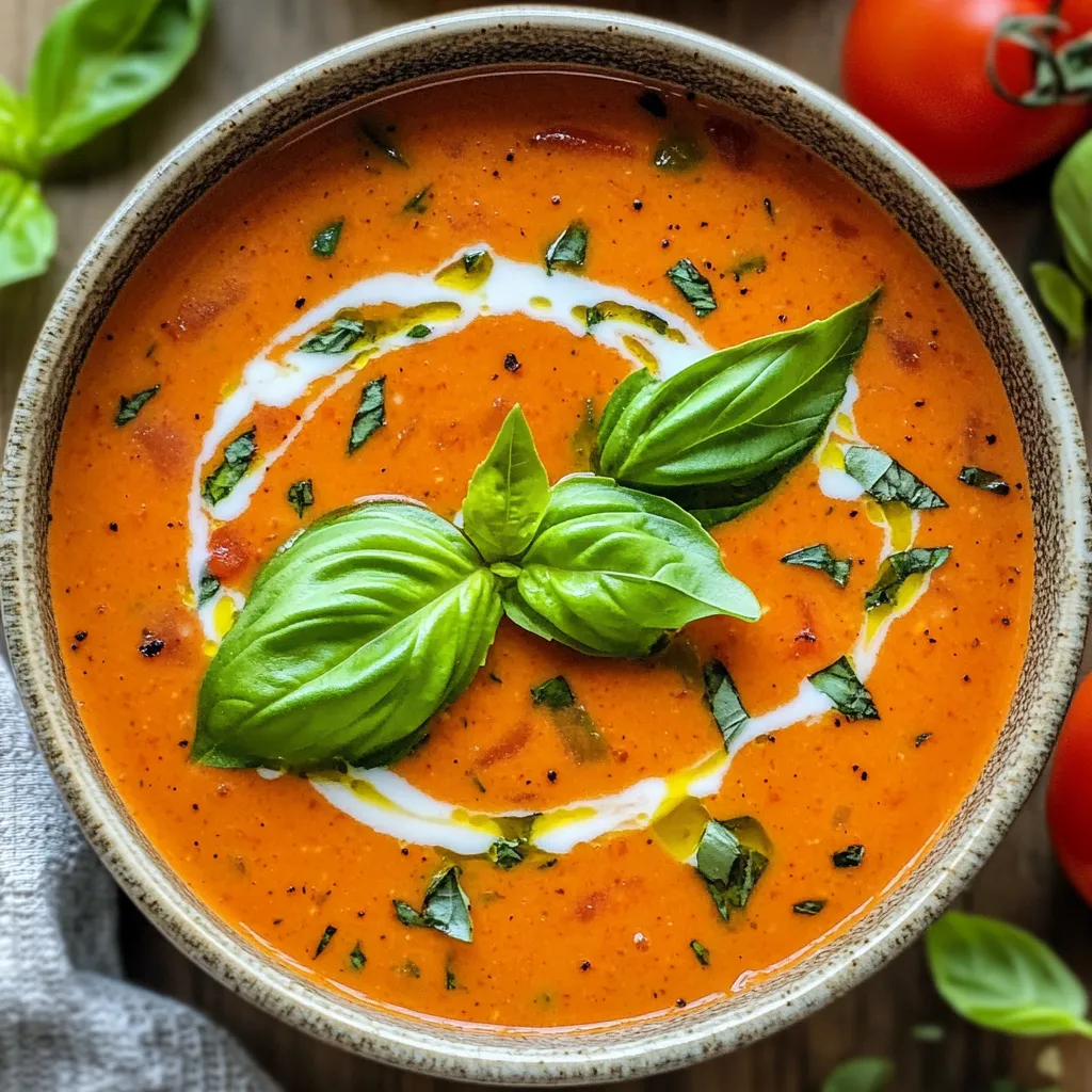 Garnishing makes your soup look special. Use fresh basil leaves on top. This adds color and a fresh taste.