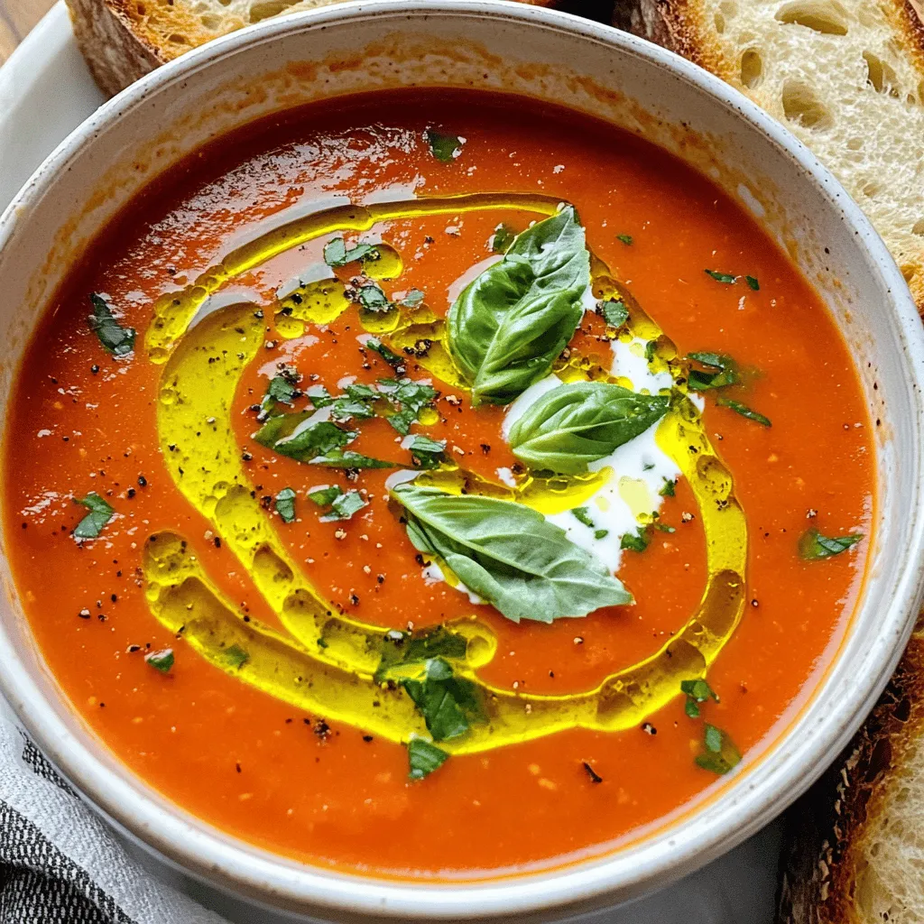 Garnishing is important for a great look. Add fresh basil leaves on top of each bowl. A drizzle of olive oil adds shine and flavor. Serve with crusty bread to complete the meal. The bread soaks up the soup and makes it even better. Enjoy the colors and textures on your plate!