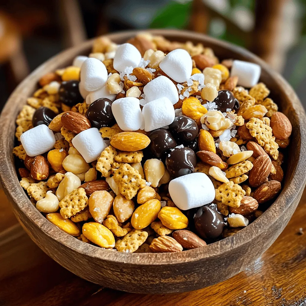 When making S’mores Trail Mix, start by measuring the ingredients carefully. This ensures every bite has the right balance of flavors. For the graham crackers, break them into small pieces. You can use your hands or a rolling pin to crush them. Just be gentle, so they don’t turn to dust.