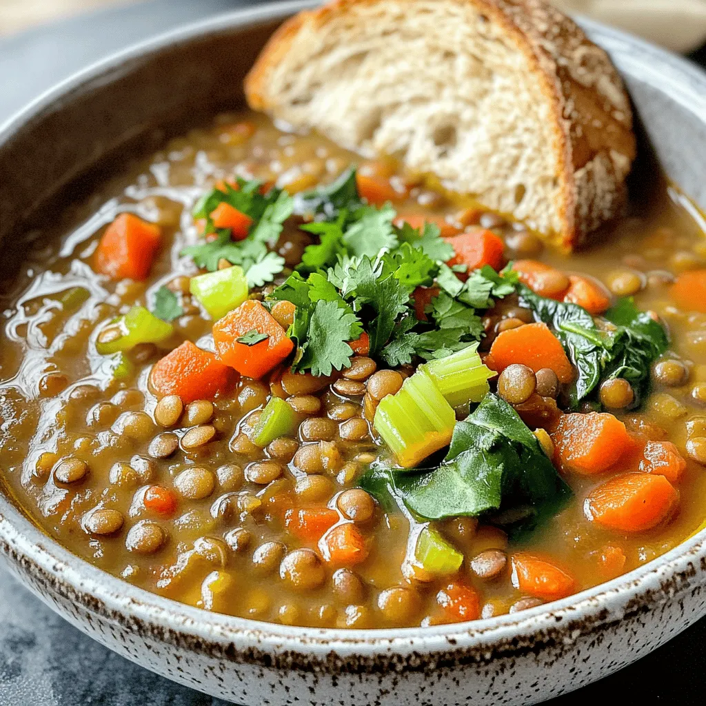 After the lentils are cooked, add two cups of chopped spinach or kale. Season with salt and pepper to taste. Cook for another 5 minutes until the greens wilt. This adds color and nutrition to your soup.