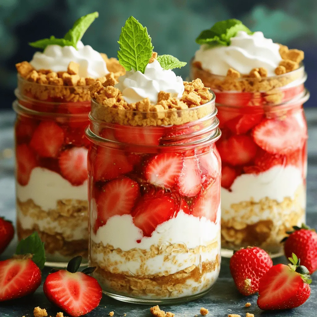 To make Strawberry Cheesecake Overnight Oats, gather these simple ingredients. Start with rolled oats as the base. They give your dish that hearty texture. Next, choose almond milk or any milk you like. This adds creaminess. Greek yogurt brings a nice tang and packs in protein. Softened cream cheese gives it that cheesecake goodness. Sweeten with maple syrup or honey for just the right touch.