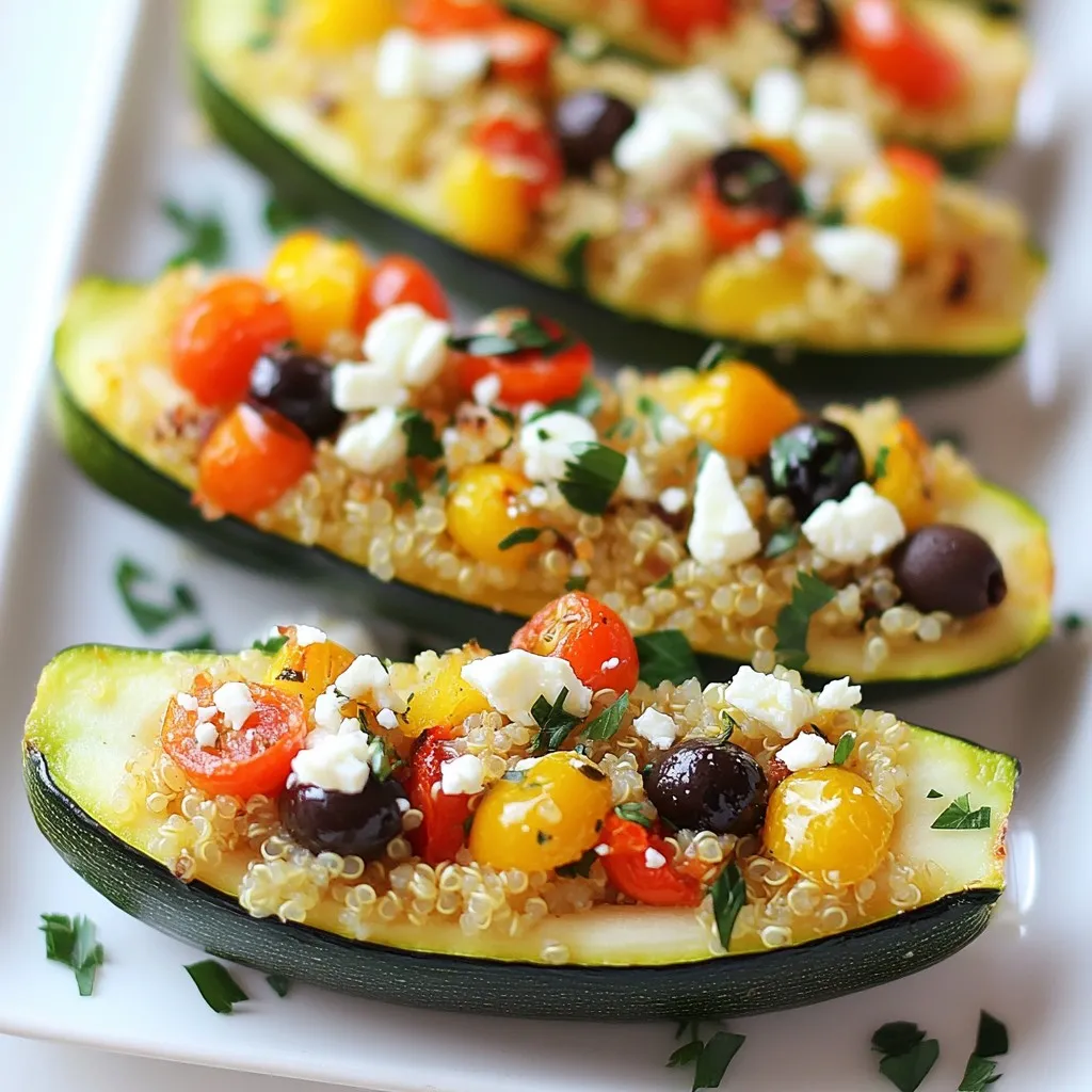 Each ingredient adds its own flavor. The zucchini acts as a great base. Quinoa gives it a nice texture and fills you up. Cherry tomatoes bring a burst of sweetness. Red bell peppers add crunch. Black olives contribute a salty bite. Feta cheese adds creaminess and tang. Dried oregano and garlic powder give depth. Salt and black pepper enhance all the flavors. Olive oil adds richness and helps with cooking. Finally, fresh parsley makes it pretty and bright.