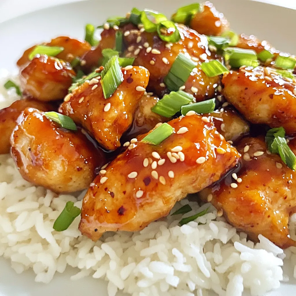 - Remove from heat and transfer the glazed chicken to a serving dish. Garnish with sesame seeds and sliced green onions for a fresh touch.