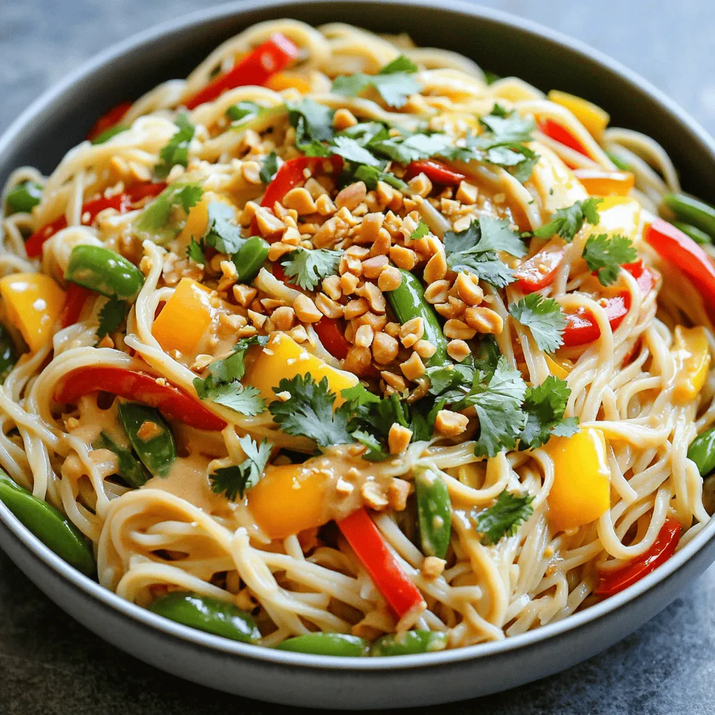 For serving, use large bowls. Garnish your dish with extra chopped peanuts and fresh cilantro. You can also drizzle more lime juice on top for an added zing. This not only enhances the flavor but makes your dish look beautiful. Enjoy your Thai peanut noodles!