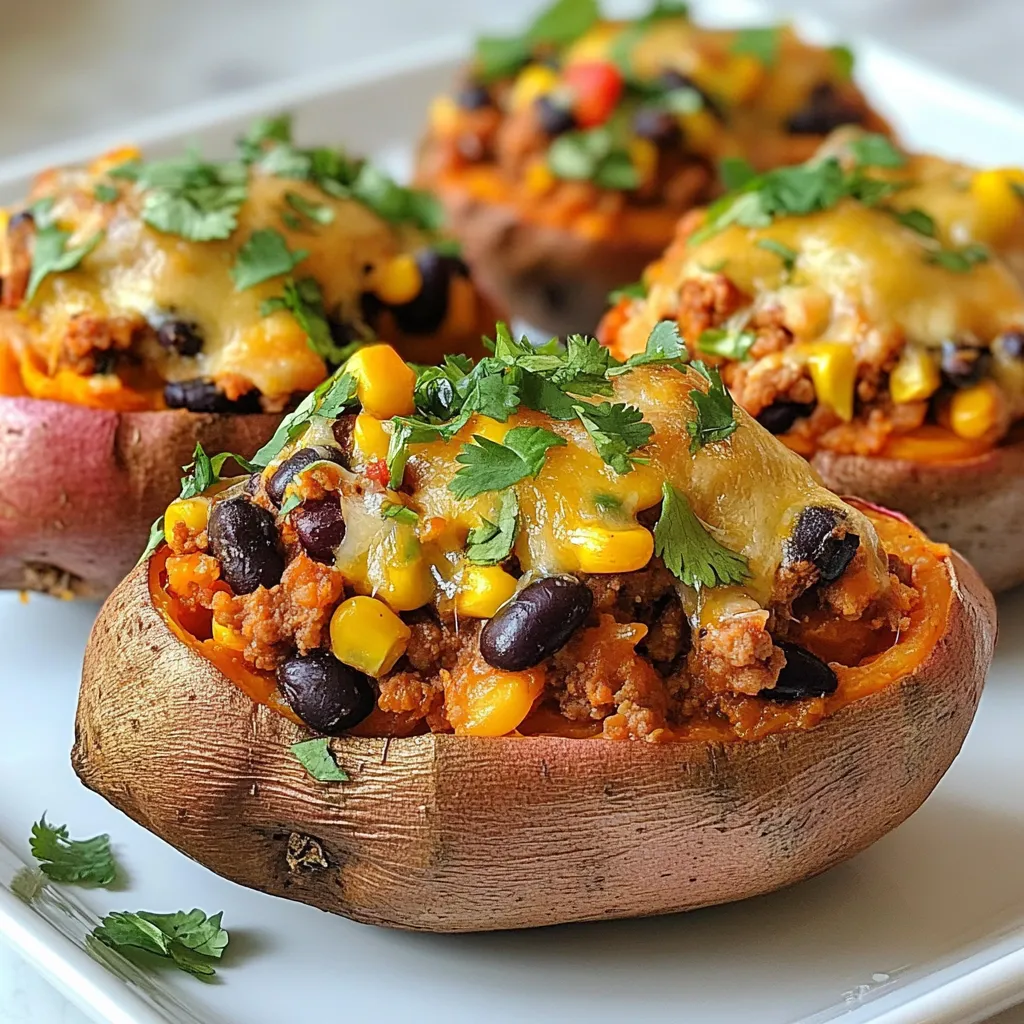 For toppings, shredded cheese is a must. Cheddar or Monterey Jack works well. Add cheese on top of the stuffed sweet potatoes before baking them again. Fresh cilantro adds brightness. Sprinkle it on right before serving. You can also try avocado or sour cream for creaminess. If you want a spicy kick, add jalapeños or hot sauce. These toppings make your dish even more delicious and fun!