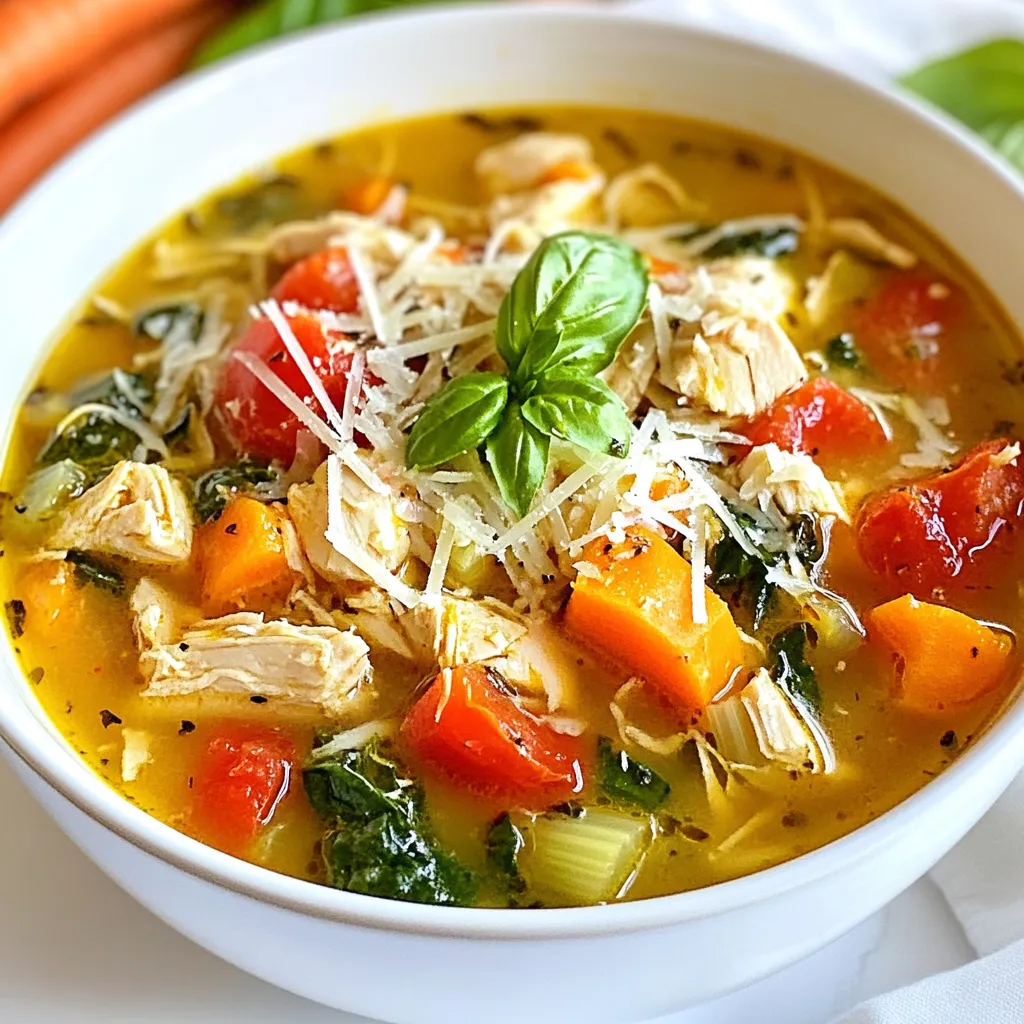 You can easily make a tasty vegetarian version of Tuscan chicken soup. Start by using vegetable broth instead of chicken broth. For protein, add chickpeas or lentils. Keep the diced tomatoes and vegetables like carrots and celery. You can also use kale or Swiss chard for a nice green touch. This soup remains hearty and full of flavor without meat.